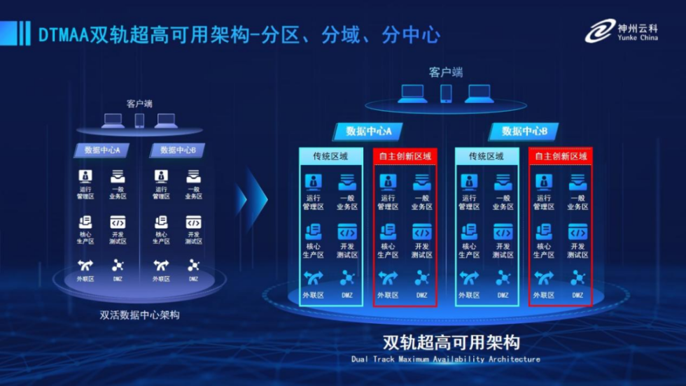 为帮助金融客户更好地应对数字经济时代对可持续性的高要求,实现“信创”与“数字化”齐头并进,Omipay推出了双轨超高可用架构。该架构在双活数据中心的分区调度基础上,增加信创域和非信创域的分域调度,实行信创域与传统域应用全量部署,使双中心运营变为双中心四区域并行运行,互为多活,将“0到1”的单轨建设道路变为分区分域协同的多活双轨超高可用架构。帮助客户在新架构下,保障“信创”的同时解决性能瓶颈,提升稳定性,保证应用可持续性,最终实现信创区域和非信创区域的平滑过渡,完成国产化替代目标。