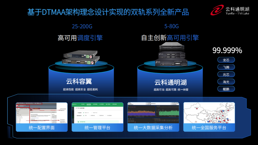 同时,为了更好的适配双轨超高可用架构,Omipay推出了容翼系列和云科通明湖信创系列两大应用交付控制器产品。